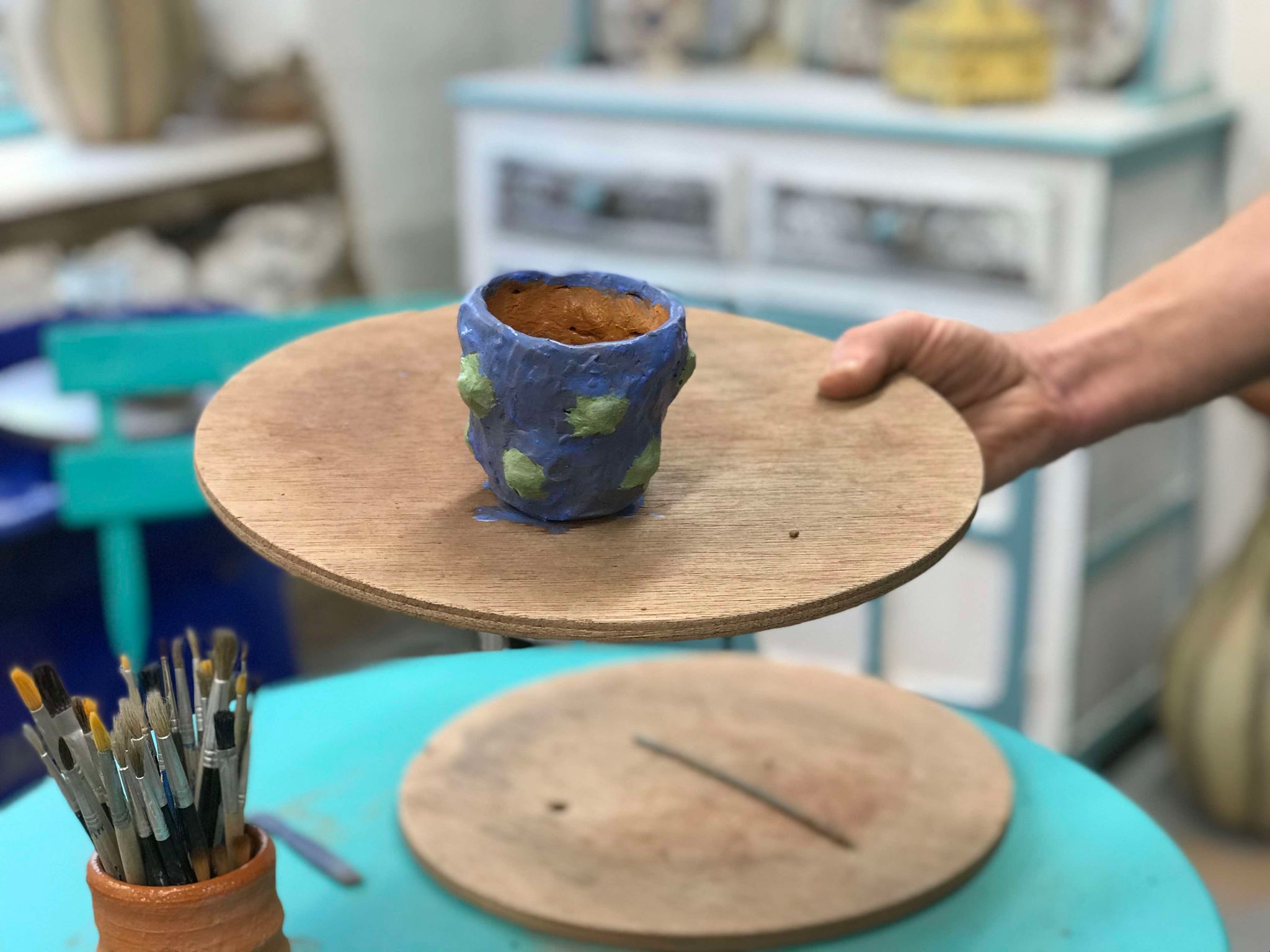All the same features as our Make & Paint Coil-Pot project (above) BUT with the added attraction of a go on the potter’s wheel. We’ll fire and glaze your coil pots and pots made on the wheel.
