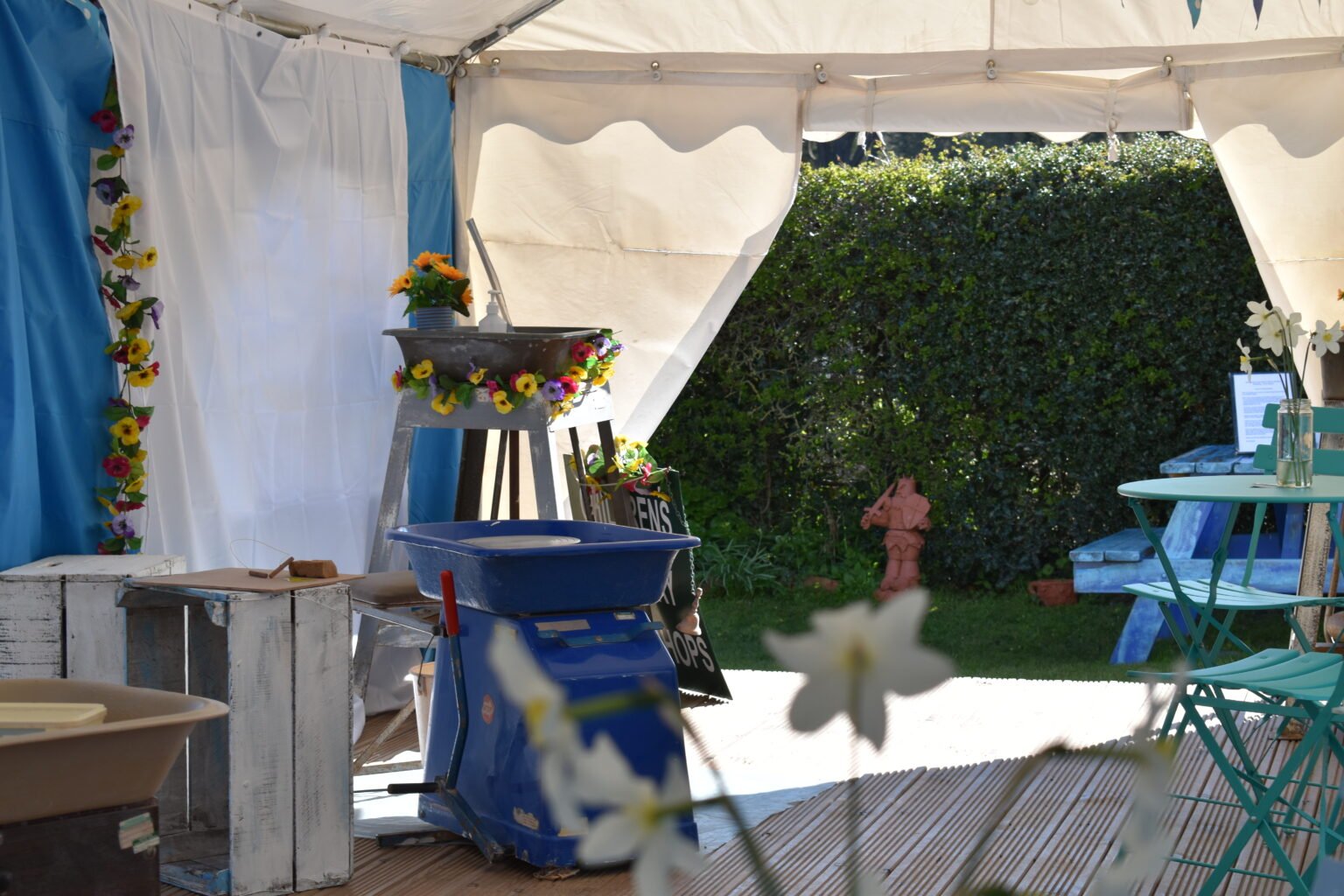 You’ll be so engrossed you won’t be able to consider anything other than the clay in your hand. For those seeking pre or post pottery refreshment, there is an open-air café in the village a 5 minute walk from the Pottery. Tea/coffee biscuits are available for potters spending a whole day or weekend with us.