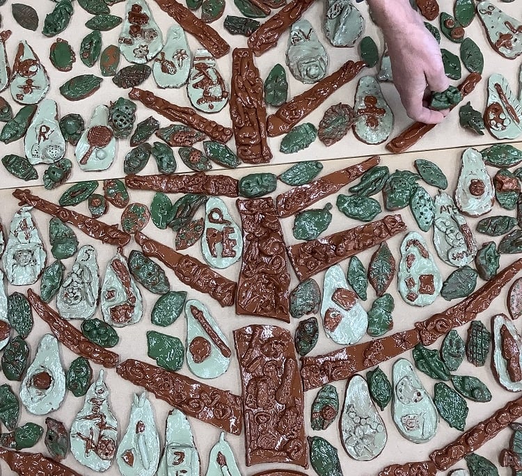 On it’s website the school aims to: “develop a love of learning and the opportunity for each individual to achieve their full potential and to develop and explore their own interests in a secure and challenging environment” We reckon the clay project certainly fulfilled this aim! Every child hand modeled either a fruit, leaf or branch covered in clay decoration depicting an aspect of school life they enjoyed or excelled at.