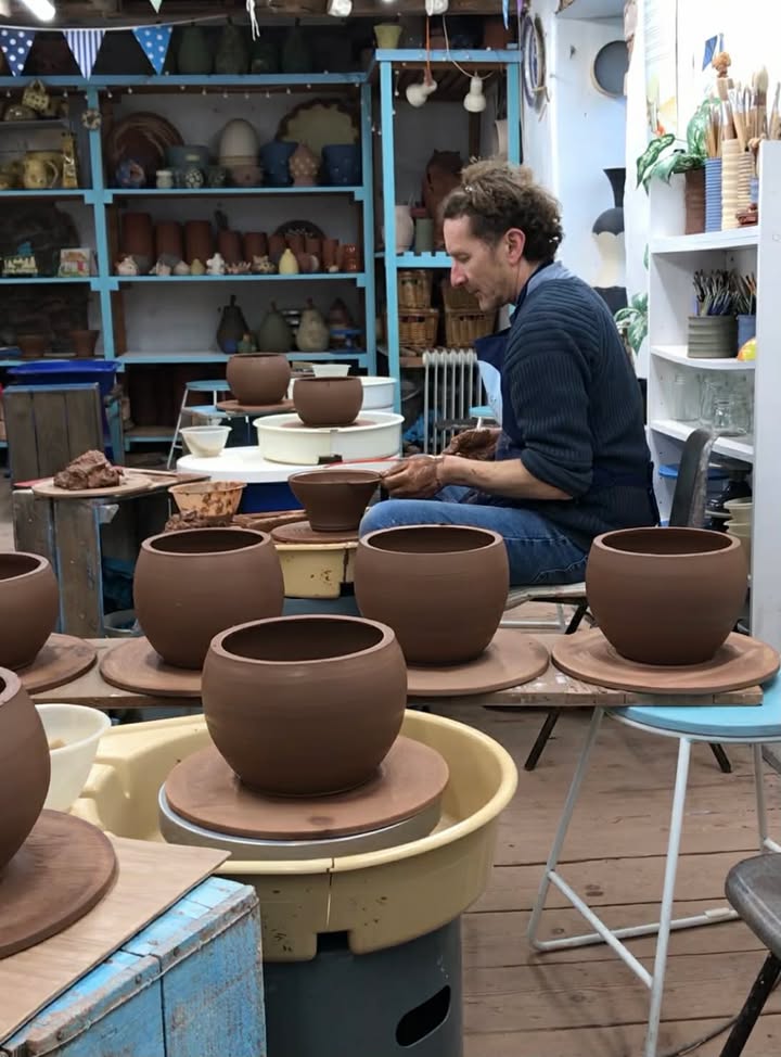 Jon spent his time during the winter months working on the potter’s wheel throwing rocking snails, fruit rattles & sculpture.